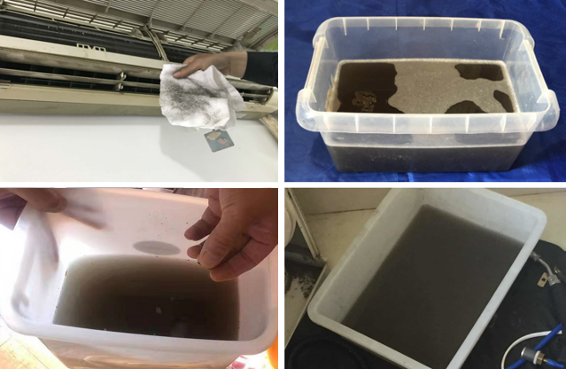 空调开机吹怪味,深度清洗蒸发器后流出一盆黑水