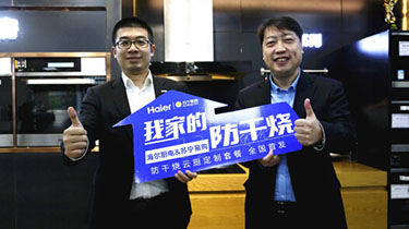12月20日,苏宁&海尔2018年度战略启动大会在青岛海尔总部召开,苏宁易购厨卫公司总裁王冬与海尔厨电签下10亿战