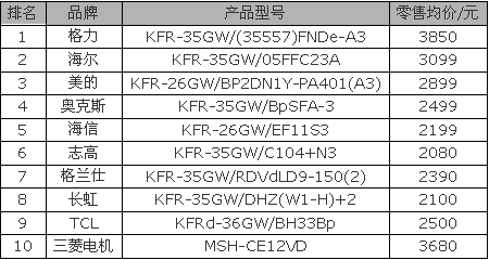 三、2014年4月空调零售销量TOP10