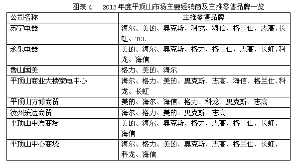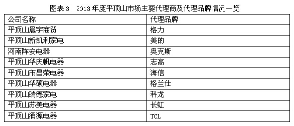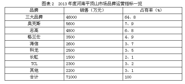 海信由平顶山市昌荣电器来代理,科龙由平顶山瑞德家电来代理,长虹由平顶山苏美电器来代理,TCL由平顶山涌源电器来代理,本年度在平顶山市场也有着不错的表现(图表2、3)。
