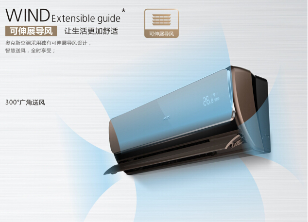 在这个惬意的空间,让风听从你的吩咐,也让生活更加舒适时尚。奥克斯全新L系列智能空调,采用可伸展导风设计,300度广角送风,智慧送风,全时享受。