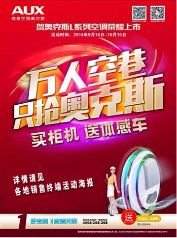 2. 体感车豪礼——买柜机就送体感车,最时尚的美感空调,最时尚拉风的智能交通工具,时尚大礼动人心魄。