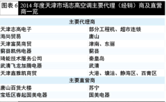 2014年度,天津志高产管中心管辖天津地区,另外还负责唐山、秦皇岛区域的操作,采取代理加直营的销售模式,销售额为1.6亿元。本年度,志高在天津的主要增长点是卖场系统的销售,较同期增长80%以上。代理商方面,天津志高电子代理部分工程机和超市连锁, 唐山海尚贸易代理唐山地区,天津富昊商贸代理津南、东丽地区,琦能技术服务公司代理秦皇岛地区,蓟县凯伟电器代理蓟县,武清飞龙加腾电器代理武清,天津鑫雅凯商贸代理大港、塘沽、静海区和西青区。直营商主要有唐山百货大楼、宝坻区春起国美电器、苏宁、国美电器(图表6)。
