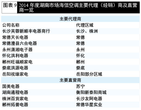主要直营商有国美电器、苏宁、湖南通程电器、衡阳新泰阳商城、株洲百货家电、长沙友阿电器、郴州拓普电器、常德华星实业等(图表9)。