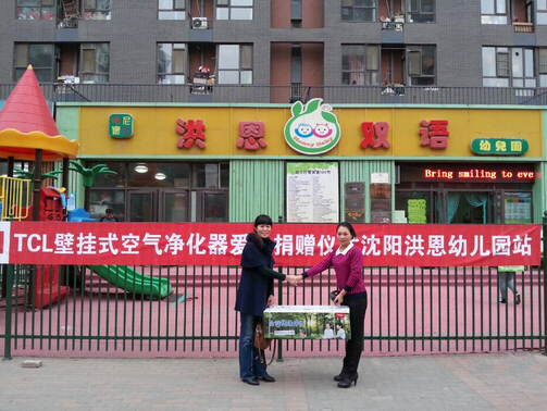 2014年10月,TCL空调正式发布了全球首款壁挂式空气净化器,同时,秉承了TCL集团30多年来一贯积极投入公益、践行企业社会责任的优良传统,迅速号召各级分公司,面向全国开展了爱心捐助活动。捐助对象主要为学校及医院这类人口最为密集的地方,如湖南省中医第一附属医院、长沙市清园小学、西安第四军医大学、沈阳洪恩双语幼儿园、长春市北京维思德幼儿园、重庆儿童医院、德州市新城建设管理办事处童心幼儿园等等。
