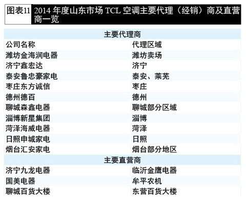 TCL空调山东营销中心采用小区域代理加直营的模式。