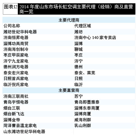 直营商主要有济南三联商社、苏宁、青岛宇恒电器,青岛即墨雅泰、烟台三联、淄博东泰商厦、烟台新飞达、淄博商厦、威海利群、淄博金帝、乳山利群、菏泽曹县温龙家电、潍坊世纪华科电器等(图表12)。