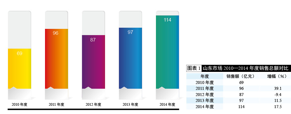 2014年度山东空调市场总容量为114亿元,同比增长17.5% (图表1)。
