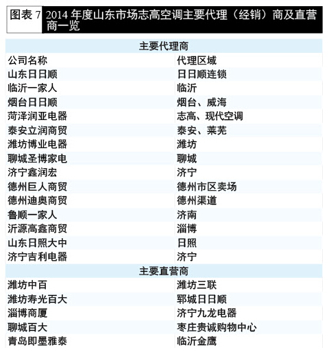 志高在山东的主要直营商有潍坊中百、潍坊三联、潍坊寿光百大、郓城日日顺、淄博商厦、济宁九龙电器、聊城百大、枣庄贵诚购物中心、青岛即墨雅泰、临沂金鹰等(图表7)。