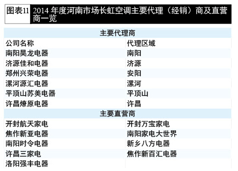 主要直营商有开封航天家电、开封万宝家电、焦作新亚电器、南阳家电大世界、南阳时令电器、新乡八方电器、许昌三家电、焦作新百汇电器、洛阳强丰电器等(图表11)。