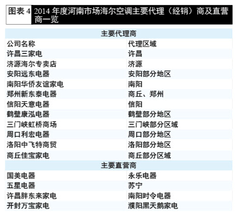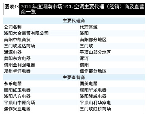 主要直营商有永乐电器、国美电器、濮阳红玉电器、濮阳华龙电器、洛阳八方电器、洛阳隆威电器、平顶山中原商场、平顶山利华家电、焦作兴亚电器、三门峡虹桥商场等(图表13)。