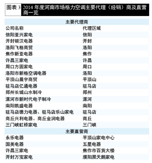 主要直营商有永乐电器、平顶山家电中心、国美电器、五星电器、许昌三家电、焦作市百货大楼、开封万宝家电、濮阳黑天鹅家电等(图表3)。
