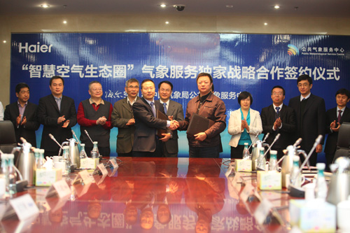 11月4日,中国气象局公共气象服务中心和海尔签署独家战略合作,探索“空气大数据”在智能家居领域的深层价值。双方将联合开展气象服务,率先在智能空气类家电领域,包括硬件研发、大数据探索、服务模式等方面展开系列合作,提升面向智能家居用户互动场景和保障用户生产生活的气象信息服务能力。这是“空气大数据”首次从服务公共领域延伸到家庭领域,为家庭个人提供更加准确、专业的空气服务。同时这也意味着海尔在大数据应用领域已成功实现跨界融合。