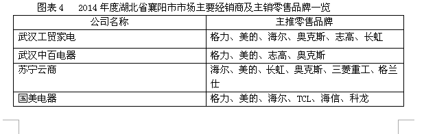 全国连锁卖场在襄阳地区的销售也占据大部分市场,苏宁主要销售的品牌包括海尔、美的、奥克斯、志高等,国美电器的主要经营品牌有格力、美的、海尔、志高、奥克斯等。