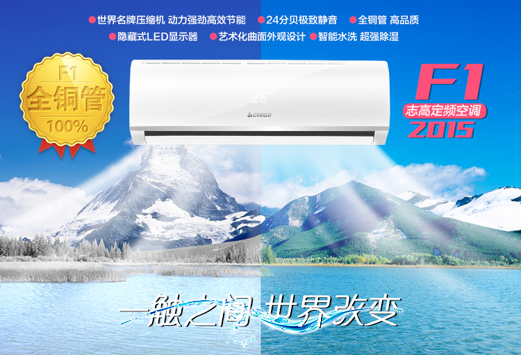 一触之间,世界改变。志高NEW-GD9F1H3家用空调系列,艺术化的曲面机身,精美的外观设计不乏专业的品质保证,倾心为您打造极致用户体验。
