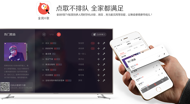 另外,创维G3系列许多优化的功能更是贴心之作。首先,随时开关原唱/伴唱、调整音量、升降调等功能整合至手机的贴心助唱让你在K歌过程中能够自由掌控;另外,手机APP扫描二维码即可获取掌上TV控制器,且支持多人同时操作,互不影响;与此同时,手机端TV控制器支持把手机用作话筒,而无需话筒,手机即可K歌,且支持两人同时对唱。这样的K歌乐趣是不是妙不可言呢?