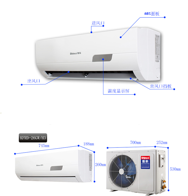 新科KFRD-35GW/H3直流变频空调独有120伏超低电压启动(120V—262V)宽电压带设计,压缩机无频繁的剧烈启动,耐用安全。