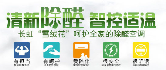 长虹“雪绒花系列”空调,呵护全家的除醛空调,智控适温,清新除醛。