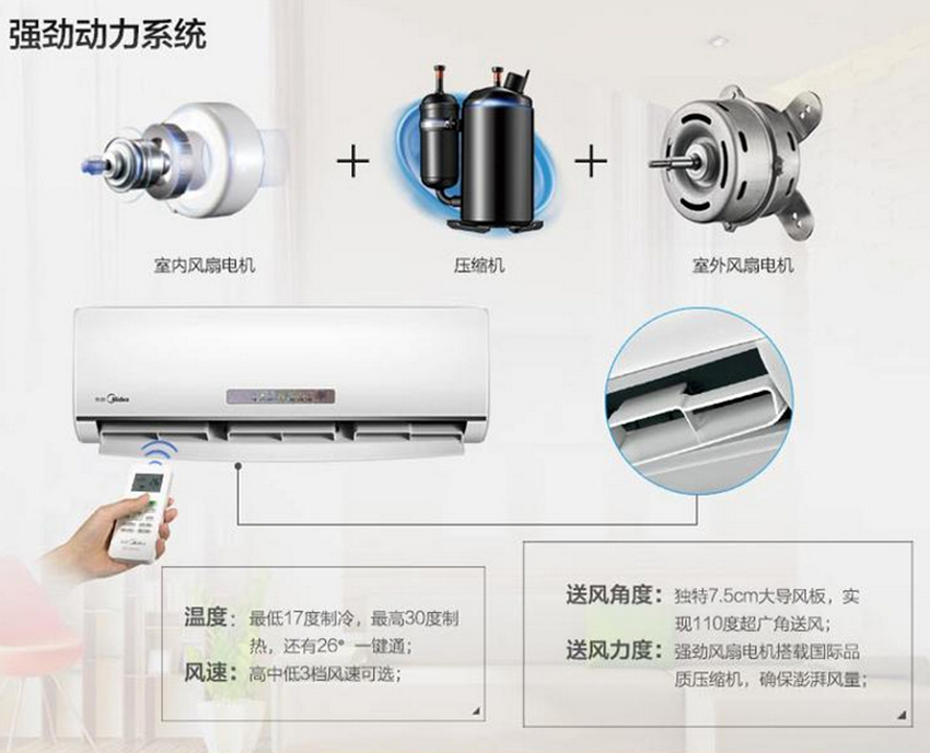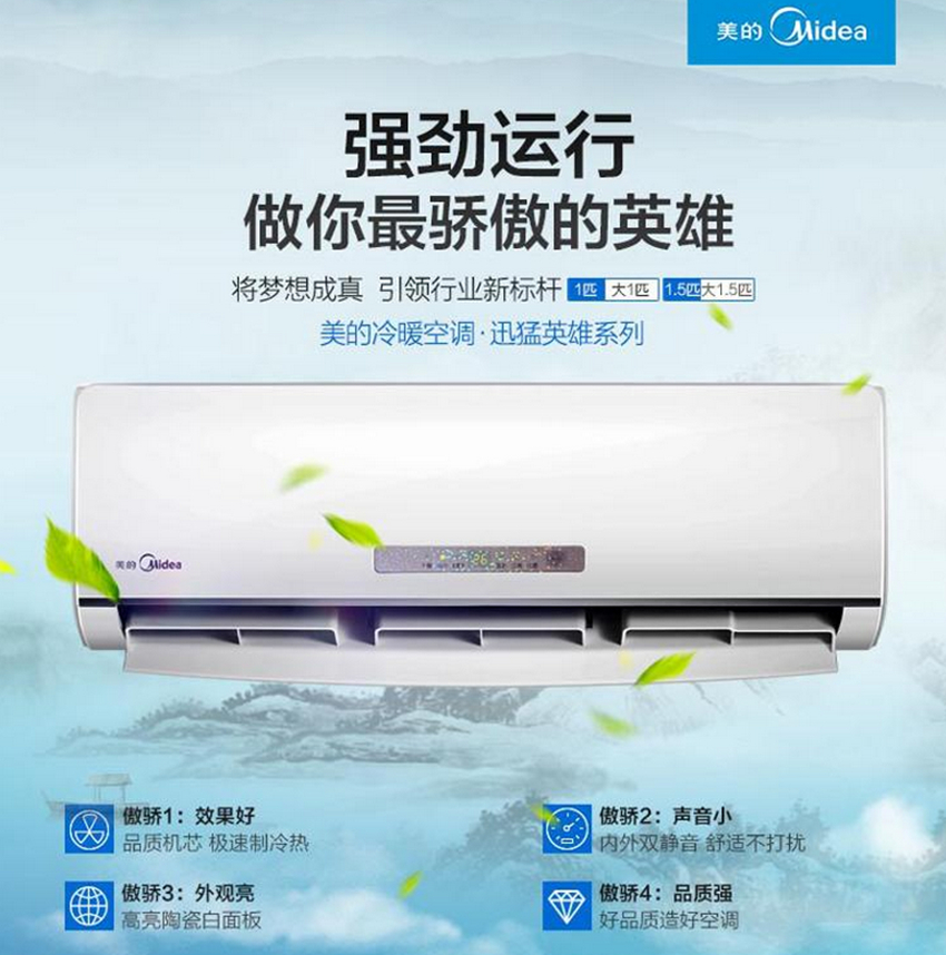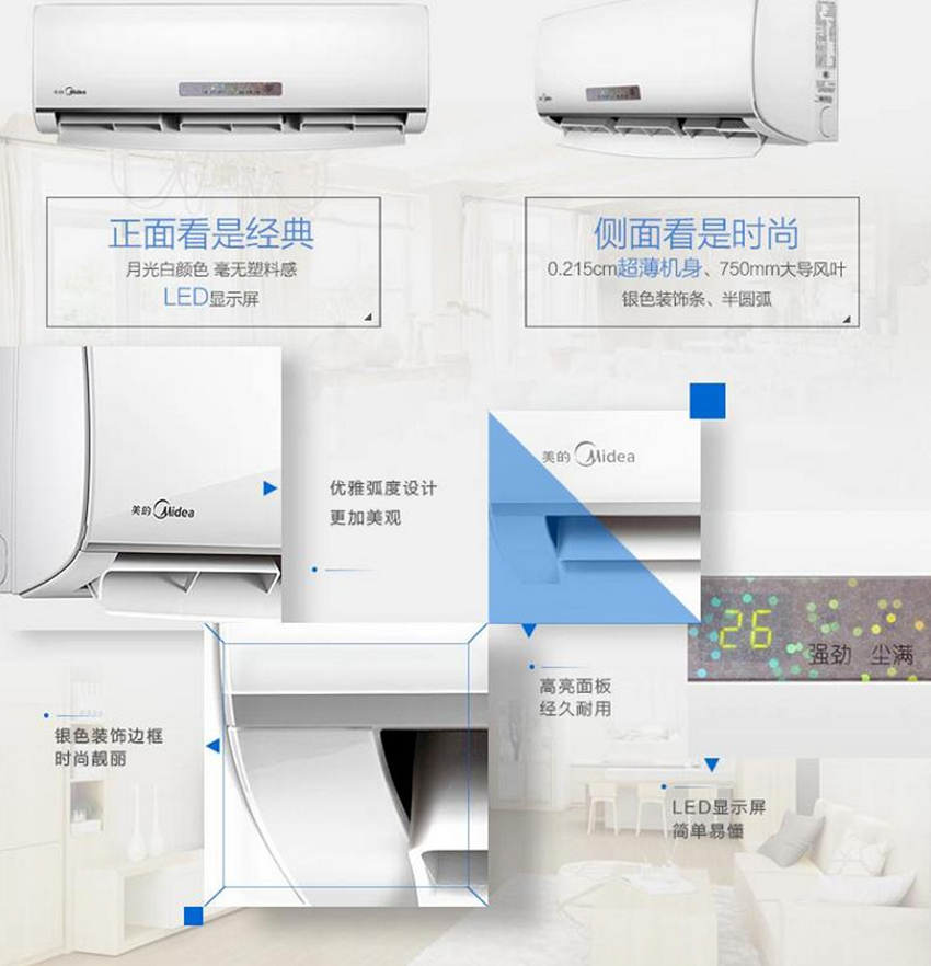 美的KFR-26GW/WPAD3迅猛冷暖定速挂机外观采用了最为经典的白色,当然,机身215fa_cms_addonnews的超薄设计,让其更受年轻消费者的喜爱。据悉,该空调还运用了ABS面板,这是一种新兴的材料,兼具韧、硬、刚相均衡的优良力学性能,即耐用又便于用户的日常养护。