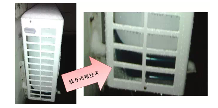 悦世V智(086BP)机组内外机5点温控精确检测,自动调节除霜时间,有霜化霜,无霜不化,霜尽退出。独有化霜设计,底部不结冰,保持水流畅通。