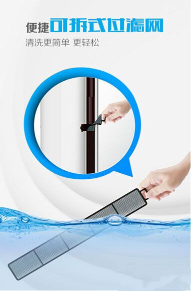 柜机个头大,一般摆放在客厅这样比较开放的环境中工作,相比挂机而言,柜机空调的过滤网更容易脏一些。菱悦IK柜机的设计师们独具匠心,以用户为中心,采用便携式可拆洗结构搭配黑色加密过滤网,让你轻轻松松就能自行拆卸,方便做好过滤网的清洁。