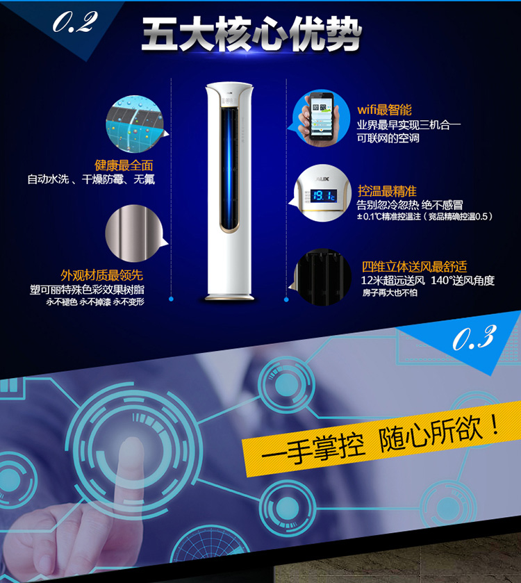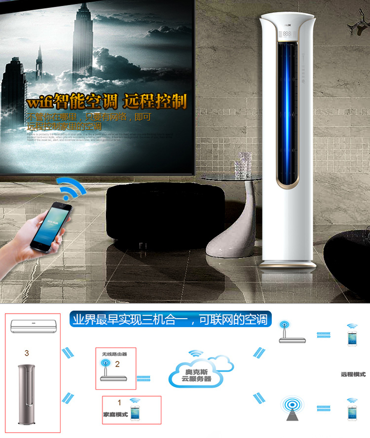 该空调搭载了京东智能云互联,下载京东超级APP即可wifi联网操控。只要有wifi就能远程控制,不同终端下载APP程序可以同机多终端控制。