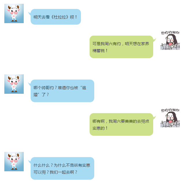 如何变身杜拉拉成功“升职”也不是什么天方夜谭!作为铁杆杜拉拉迷,今明两天,和闺蜜约着去电影院看一场《杜拉拉追婚记》!如下,是某闺蜜间的对话记录: