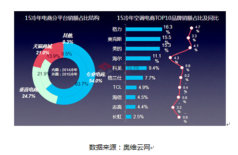 2015年奥克斯线上取得骄人的业绩,业界评论褒贬不一。有一线品牌表示,奥克斯总体量小,虽然整体出货降幅优于其他品牌,但不足以对我们构成威胁;也有一线品牌认为,奥克斯同比表现好,主要是因其去年同期的基数小所致。而二线品牌更多的是对奥克斯的肯定,某二线品牌营销负责人更是直言:“奥克斯电商表现不错,胆子大、速度快、效率制胜,这是奥克斯的优势”。也有二线品牌认为:“虽然今年累计出货降了一点,但好的是奥克斯转型成功了”。