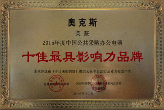 于是,高规格、高品质、高技术的奥克斯空调产品,也开始越来越多受到社会各界人士的一致认可和好评,奥克斯“绿色时尚健康”的品牌理念更成为中央及地方政府机关争相购买的典范,斩获2015年度公共采购办公电器十佳最具影响力品牌。