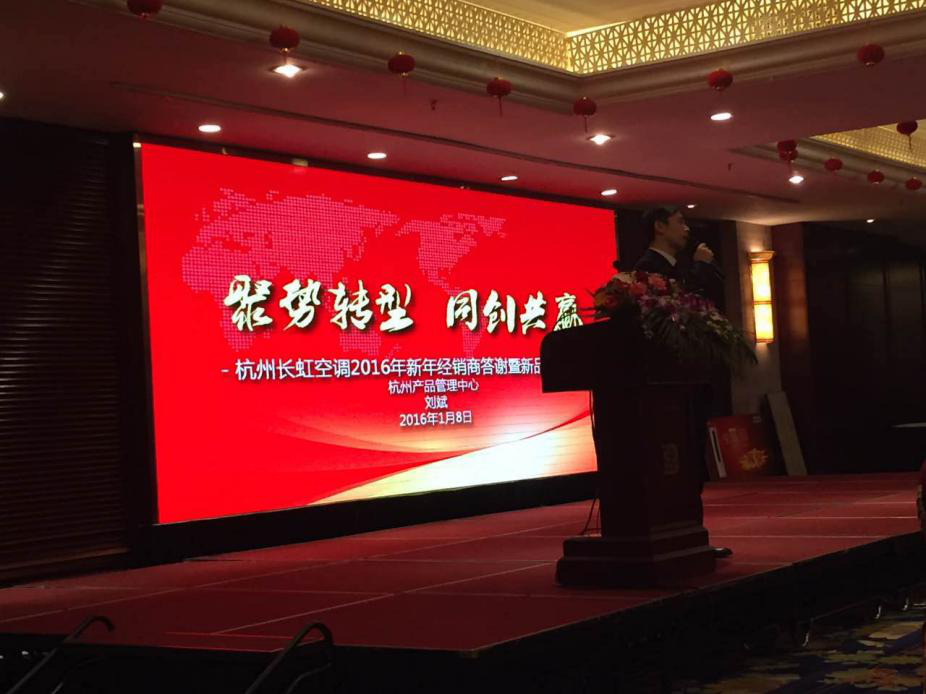 2016年1月8日下午,以“蓄势转型 同创共赢”为主题的长虹空调2016年杭州中心核心经销商大会在全国率先拉开帷幕。会议现场,嘉宾云集,长虹空调公司领导与现场300多名核心经销商携手回顾过去一年的营销战绩,展望充满机遇与挑战的2016。