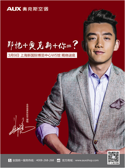 另据悉,郑恺将于3月9日所开始的AWE在奥克斯空调的展馆中亮相,届时奥克斯和郑恺将联袂玩出值得关注的新奇事件。