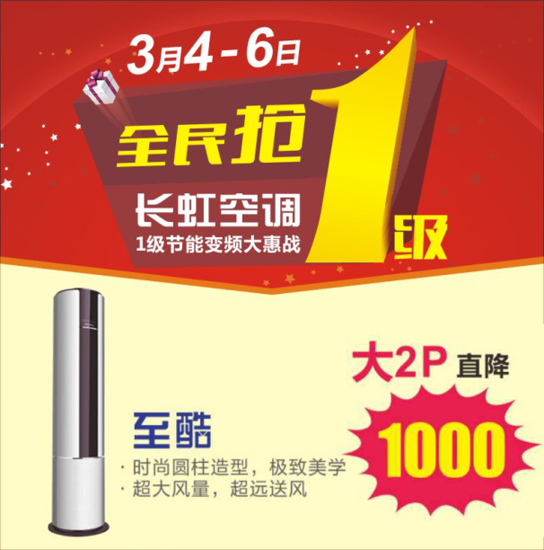 新年伊始,长虹空调在全国率先发起一场“全民抢一级、长虹空调一级节能大惠战”的大型促销活动,将引发猴年开春以来一级能效空调的抢购热潮,领跑中国空调能效升级。