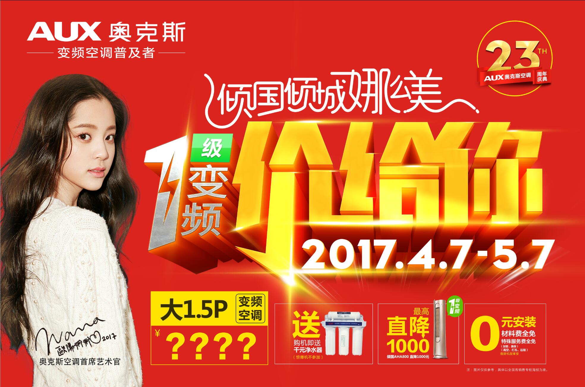 早在4月7日,奥克斯就已在连锁卖场、传统渠道启动主题为“倾国倾城‘娜’么美,一级变频‘价’给你”的五一大促活动。