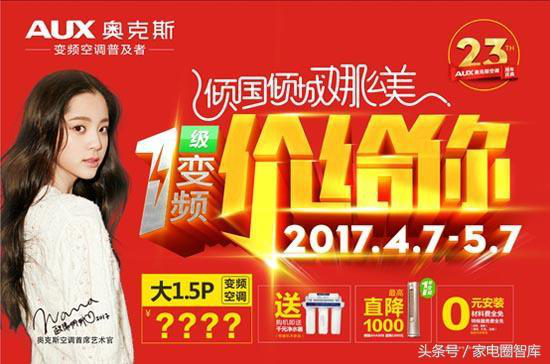 硝烟并不是在五一前后,而是刚进四月大门就悄然燃起,奥克斯在4月7日一张"倾国倾城娜么美,一级变频价给你"海报迅速再次让市场躁动,以一级变频空调为发力点,通过如此动作快、跨度长、营销精的大布局快速抢占市场先机,这是出乎业界的预料。
