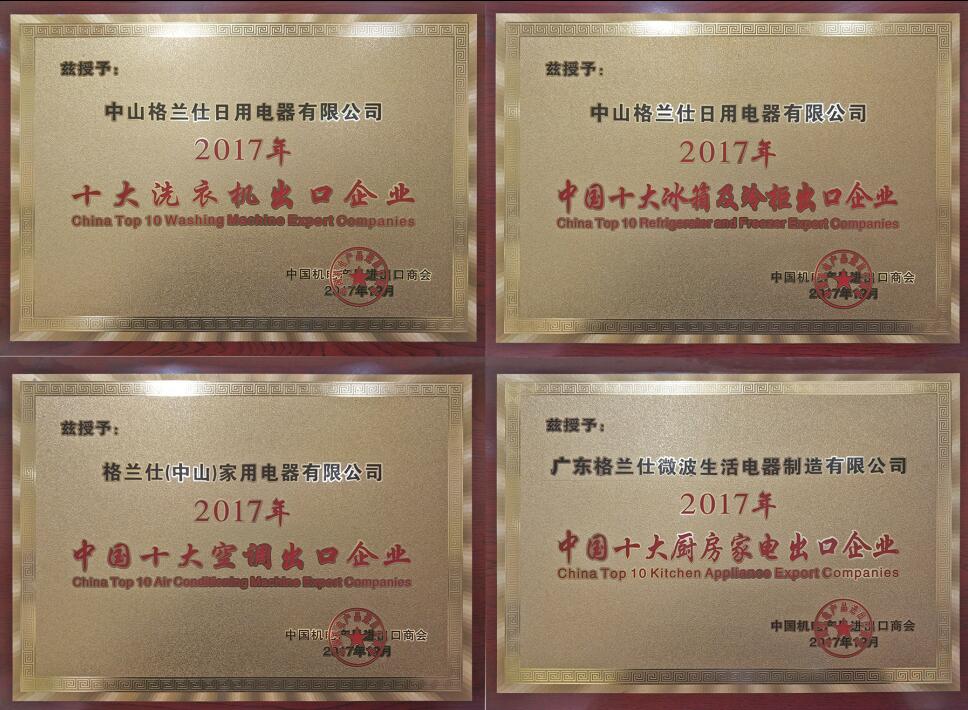 作为会议重磅环节,会上举办了中国电子家电出口百强发布仪式。格兰仕家电凭借精品家电的品质和口碑畅销海外,一举揽获“2017年中国十大厨房家电出口企业”、“2017年中国十大空调出口企业”、“2017年中国十大冰箱及冷柜出口企业”和“2017年中国十大洗衣机出口企业”共4项奖项。值得鼓掌的是,同一天格兰仕还凭借国内外品牌影响力,荣获“大国品牌”荣誉。