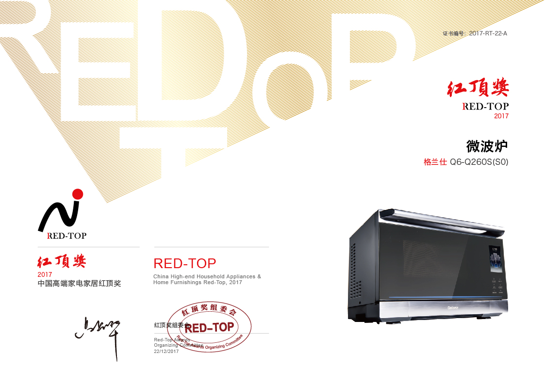 近日,第九届中国高端家电家居趋势发布暨红顶奖颁奖盛典在北京举行,格兰仕微蒸烤一体机(Q6-Q260S(S0))凭借领先的技术和优异的产品品质,一举荣获中国家电界的至高荣誉——红顶奖。同时蒸烤炉(CG25T-C63)获红顶奖提名。