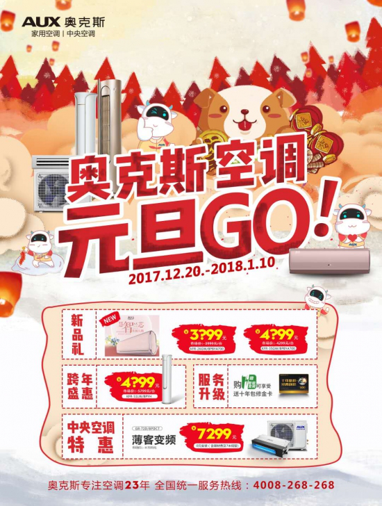 作为传递温暖的践行者,奥克斯空调在元旦来临之际,面向消费者送出了自己的暖心祝福,推出了“元旦GO”空调促销活动。备受消费者关注的智月空调:奥克斯1匹变频空调KFR-26GW/BPBYA700和奥克斯1.5匹变频空调KFR-35GW/BPBYA700,将作为本次活动的主推单品亮相。