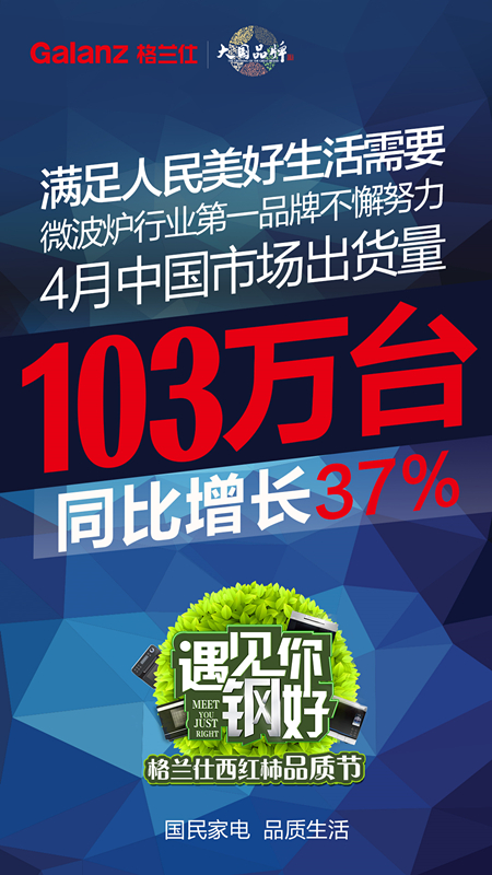 格兰仕生活电器营销本部负责人表示,作为行业第一品牌责任更重,需要不懈努力,不断超越消费者的美好生活需要。五一前夕,格兰仕在全国范围内启动“遇见你 钢好”主题格兰仕西红柿品质节,联合苏宁、国美等主流渠道合作伙伴,聚焦微蒸烤一体机Q6、蒸烤炉R60、纯蒸炉P90等全套高端不锈钢家电普及,为全国用户提供全方位的品质生活新选择。