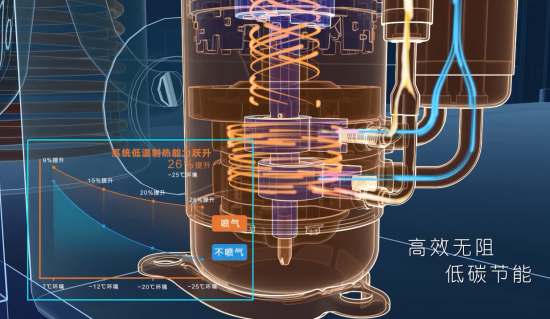 在目前进行得如火如荼的“煤改电”进程中,GMCC从客户与消费者的角度出发,围绕北方居民低温制热难的困境对热泵采暖专用压缩机进行技术突破,创新耦合了变频、变容、喷气增焓技术,实现-25°强劲制热,让北方采暖变得更为环保、简单。