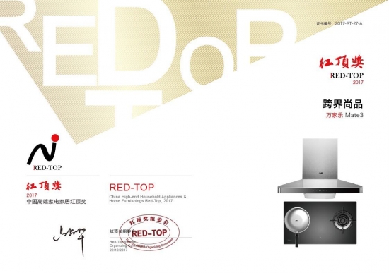同样是运用物联网技术,万家乐却凭借推出的 “mate3智联饪”厨电新品在刚刚结束的第九届高端家电家居趋势发布暨红顶奖颁奖盛典上将“跨界尚品”的桂冠收入囊中。对于中国家电市场而言,红顶奖不仅仅是一项行业荣誉,也是一个品牌地位的确认。通过评选出年度内在技术先进性、节能环保、工业设计和品牌口碑等方面均有出色表现的高端家电产品,来推动产业结构转型、引导消费有序升级。红顶奖的评选对于消费者选购高端家电,具有重要的参考和借鉴意义。