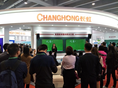 展会现场,长虹教育以推出独特长虹教育·云交互解决方案、新高考智慧校园管理方案、个性化学习提分系统-码课方案,从省市级、县区级、校园级、班级、学生的管理、监管、运营、教学、学习等方面提供完整的产品方案、运营服务、客观的数据,辅助老师学习更好的教学、学习,为学校、省市县的管理者提供科学决策。