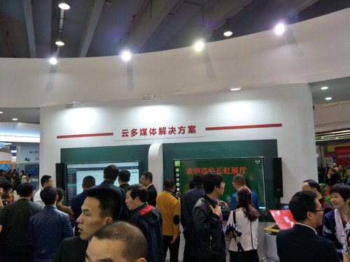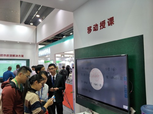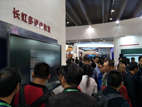 展会现场,长虹教育多媒体教室解决方案、码课解决方案、幼教解决方案、大数据平台、移动授课解决方案的区域也吸引了不少参观者体验和了解。