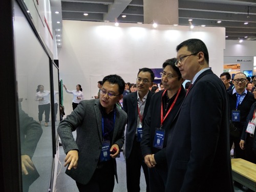 长虹教育展位不仅参观者众多,还吸引了四川省教育厅朱世宏厅长一行、教育部基础教育司装备与信息化处处长张权、部分省市自治区的教育装备领导莅临长虹教育展位参观指导,并得到了领导们的肯定和赞赏。对长虹教育提出,长虹教育作为中国教育装备行业协会副会长单位,要扛起教育装备的大旗,加大对教育装备产品的创新和研发,创新商业模式,按照高起点、高标准提升教育装备的质量,带领装备企业共同推动中国教育信息化的建设和发展。并对本届展会长虹教育的展示方案表示了肯定,对长虹教育的研发和创新能力大加赞赏。