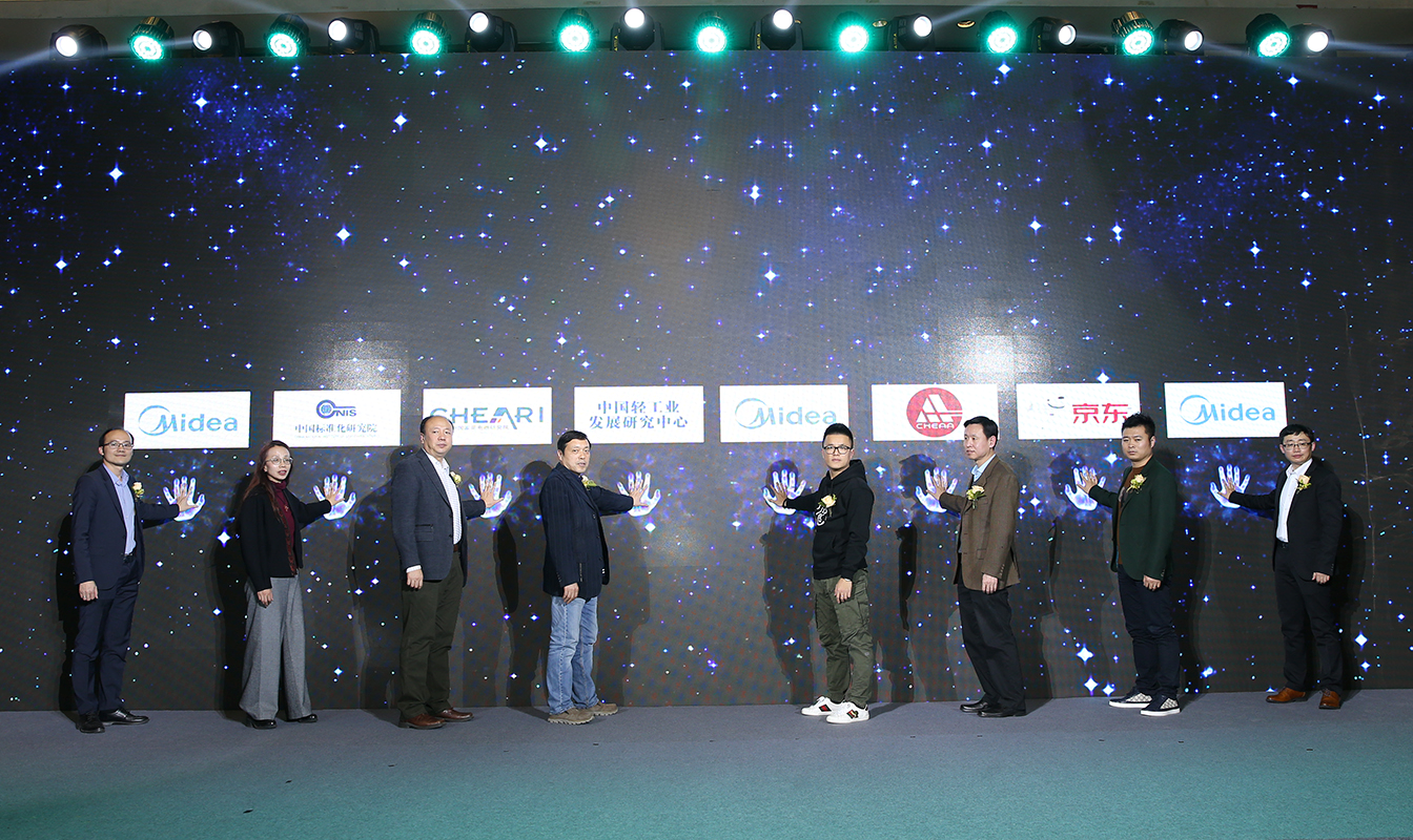 京东家电和与会的专家、学者、合作伙伴共同见证了美的智频破壁机首发上市