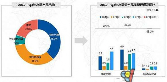 2017年三季度精装电热水器、燃气热水器为市场主力产品