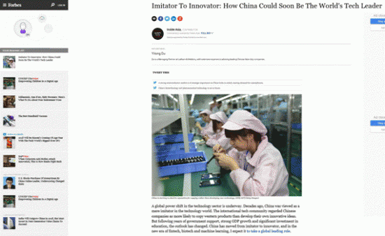 专家表示,“中国品牌”正在全球释放出前所未有的生命力。2017年9月,美国权威商业杂志Forbes(福布斯)发布的一篇名为《Imitator To Innovator:How China Could Soon Be The World's Tech Leader》的文章中提到,“在过去几十年中,中国企业已经从‘模仿者’进化为有影响力的‘创新者’。”